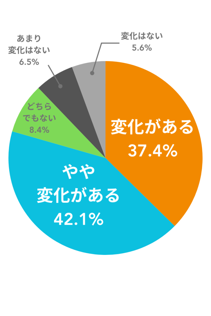 グラフを見ると「やや変化がある」が最多 42.1 %、次いで「変化がある」37.4 %。