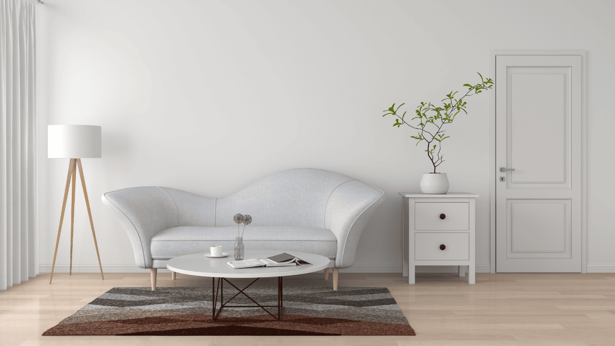 白い壁・淡いグレー・曲線フォルム――北欧テイストの売り場には、ビート控えめでざらりとしたレコードノイズが混じる Lo-fi Chillhop を。